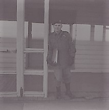 Cliff in fatigues and green beret with study manual for medical training