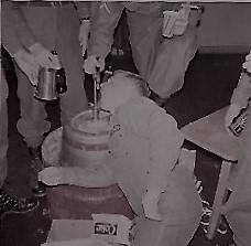 Cliff drinking from a keg at graduation, Ft. Bragg
